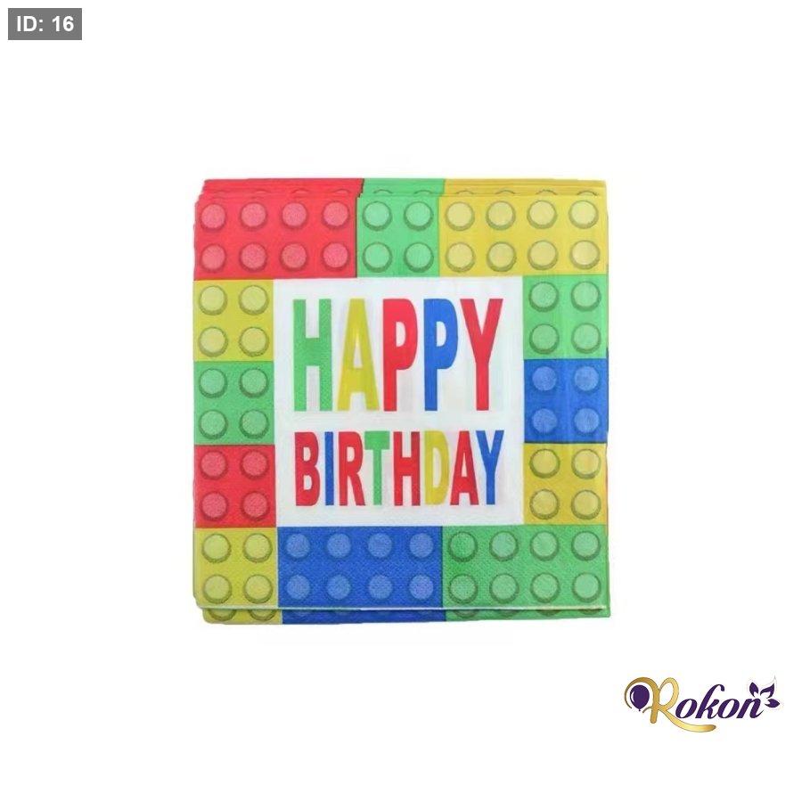 صحون كميه 8 وحداتكاسات كميه 8 وحداتورق كميه 20 وحدةشرشف طاولة 120×180علب للمسليات 12 وحداتقبعات 6 وحداتحبل زينة Happy Birthdayأقنعة على شكل بونيبالون 18